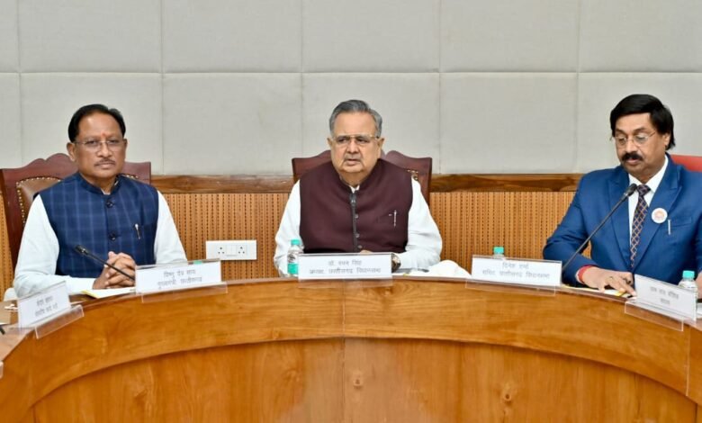 विधानसभा अध्यक्ष डॉ रमन सिंह की अध्यक्षता में आज यहां विधानसभा के समिति कक्ष में कार्य मंत्रणा समिति की बैठक आयोजित की गई।बैठक में मुख्यमंत्री श्री विष्णु देव साय, उपमुख्यमंत्री श्री अरुण साव, संसदीय कार्य मंत्री श्री केदार कश्यप सहित समिति के सदस्य उपस्थित थे।