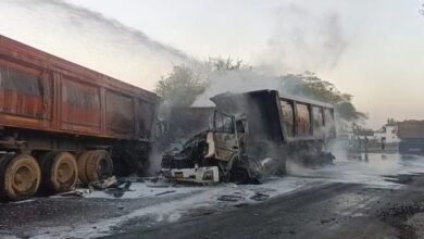 भीषण सड़क हादसे: ट्रेलरों की टक्कर से चालक जिंदा जला, सूरजपुर में पिकअप ने बाइक सवारों को कुचला