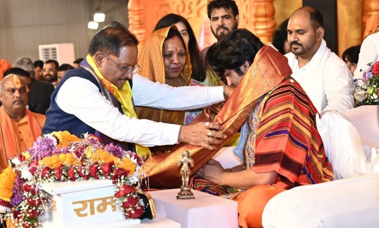 रायपुर, 27 दिसंबर 2025/ मुख्यमंत्री श्री विष्णुदेव साय जयंती स्टेडियम मैदान भिलाई में आयोजित 5 दिवसीय दिव्य श्री हनुमंत कथा समारोह में आज सपत्निक सम्मिलित हुए। मुख्यमंत्री श्री साय ने कहा कि हम सभी के लिए बड़े सौभाग्य की बात है। पंडित श्री धीरेन्द्र कृष्ण शास्त्री महाराज जी का आशीर्वाद छत्तीसगढ़ को हमेशा मिलता रहा है। उन्होंने बताया कि प्रभु श्रीराम ने अपने वनवासकाल का अधिकांश समय छत्तीसगढ़ में बिताए है। छत्तीसगढ़ माता शबरी का भी यह जगह है। इस दौरान उन्होंने भक्त माता ने जूठे भोजन को खिलाई थी।