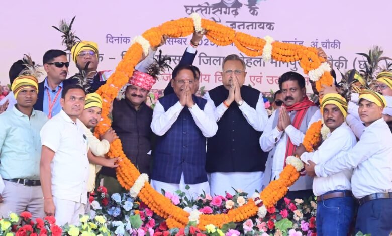 रायपुर, 03 दिसंबर 2025/ मुख्यमंत्री श्री विष्णु देव साय ने कहा कि प्रधानमंत्री श्री नरेंद्र मोदी के कुशल नेतृत्व में केंद्र सरकार एवं छत्तीसगढ़ सरकार आदिवासियों के हितों की रक्षा और उनके सर्वांगीण विकास के लिए कृतसंकल्पित है। मुख्यमंत्री आज मोहला-मानपुर-अंबागढ़ चौकी जिले के अंबागढ़ चौकी में आयोजित जनजाति गौरव दिवस एवं प्रतिभा सम्मान समारोह को सम्बोधित कर रहे थे।