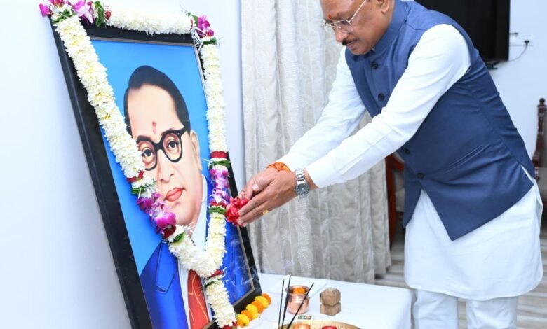 रायपुर 14 अप्रैल 2026/मुख्यमंत्री श्री विष्णु देव साय ने आज राजधानी रायपुर स्थित मुख्यमंत्री निवास में भारतरत्न डॉ. भीमराव अम्बेडकर की जयंती के अवसर पर उनके छायाचित्र पर पुष्प अर्पित कर नमन किया। इस अवसर पर शिक्षा मंत्री श्री गजेंद्र यादव, विधायक श्री रोहित साहू सहित अन्य जनप्रतिनिधि उपस्थित थे।