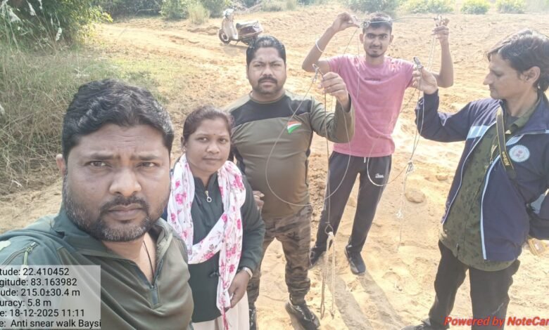 कोरिया, धरमजयगढ़ एवं सूरजपुर वनमण्डल में एंटी स्नेयर वॉक के दौरान शिकार के फंदे जब्त