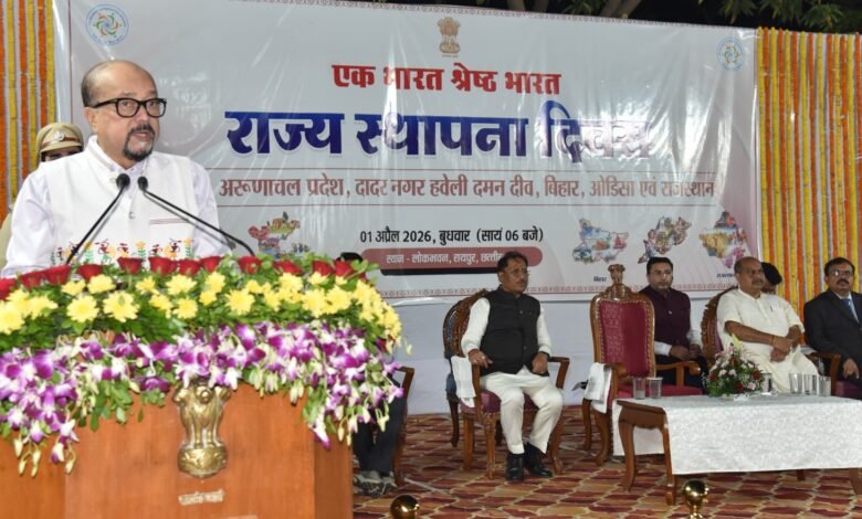 रायपुर, 01 अप्रैल 2026 / राज्यपाल श्री रमेन डेका के मुख्य आतिथ्य में आज लोकभवन में 7 राज्यों एवं केंद्र शासित प्रदेशों का स्थापना दिवस हर्षोल्लास के साथ मनाया गया। इस अवसर पर मुख्यमंत्री श्री विष्णु देव साय विशेष रूप से उपस्थित थे।