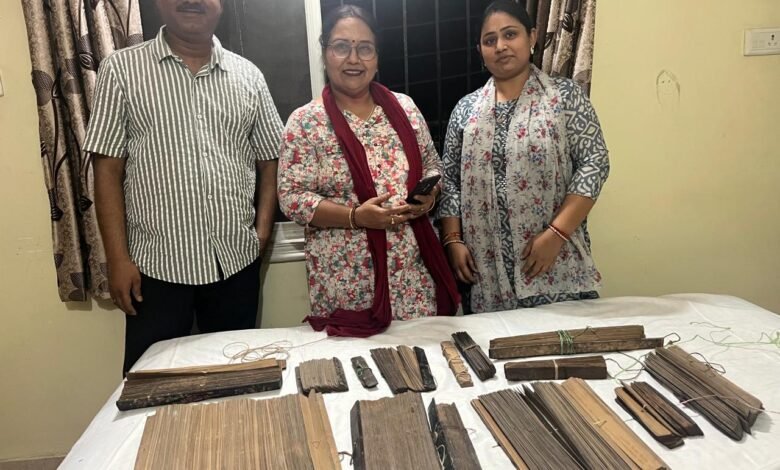 कलेक्टर डॉ. गौरव सिंह के मार्गदर्शन में जिले में विभिन्न ऐतिहासिक पाण्डुलिपियों का संग्रहण कर उन्हें ज्ञानभारतम् पोर्टल में दर्ज किया जा रहा है। इसी क्रम में सेजेज निवेदिता, गुरु नानक चौक रायपुर की व्याख्याता श्रीमती नीतू शर्मा द्वारा लगभग 200 वर्ष पुरानी दुर्लभ पाण्डुलिपियों का संग्रहण किया गया। यह पाण्डुलिपियाँ डॉ. लक्ष्मीकांत पंडा के निवास, विकास विहार कॉलोनी रायपुर में प्राप्त हुईं। इनका मूल निवास ग्राम बिरकोल, तहसील सरायपाली, जिला महासमुंद है। ताड़पत्र पर लिखी इन पाण्डुलिपियों में ज्योतिष एवं कर्मकांड से संबंधित जानकारी प्राप्त होती है।