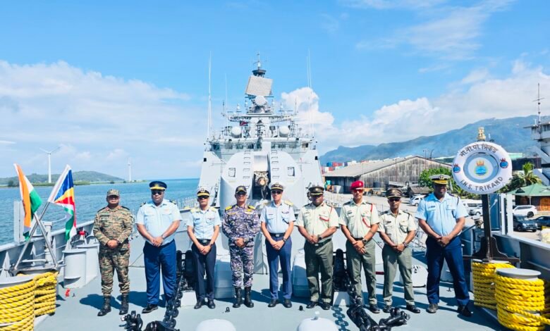 भारतीय नौसेना का स्टील्थ फ्रिगेट जहाज त्रिखंड, संवर्धन संबंधी बंदरगाह यात्रा पूरी करने के बाद 20 मार्च 2026 को सेशेल्स के पोर्ट विक्टोरिया से रवाना हो गया। जहाज के कमांडिंग ऑफिसर कैप्टन सचिन कुलकर्णी ने वरिष्ठ सरकारी अधिकारियों और सेशेल्स में भारत के उच्चायुक्त से मुलाकात की। जहाज ने सेशेल्स सरकार को महत्वपूर्ण पुर्जे और आवश्यक सामग्री भी सौंपी। भारतीय सेना, भारतीय वायु सेना और सेशेल्स रक्षा बलों (एसडीएफ) के सदस्यों के साथ, आईएनएस त्रिखंड ने अभ्यास लामितिये 2026 के पहले त्रि-सेवा संस्करण में भाग लिया। यह अभ्यास लामितिये के 11वें संस्करण में भारतीय नौसेना की पहली भागीदारी है।