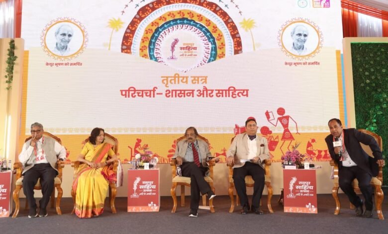 रायपुर. 25 जनवरी 2026. रायपुर साहित्य उत्सव के तीसरे दिन आज वर्तमान में साहित्य सृजन में लगे भारतीय प्रशासनिक सेवा के सेवानिवृत्त अधिकारियों ने ‘शासन और साहित्य’ के अंतर्संबंधों पर गहरा विमर्श किया। लाला जगदलपुरी मंडप में आयोजित यह सत्र मूर्धन्य छत्तीसगढ़ी साहित्यकार और पूर्व सांसद स्वर्गीय श्री केयूर भूषण को समर्पित रहा। रायपुर के कलेक्टर डॉ. गौरव कुमार सिंह इस सत्र में सूत्रधार की भूमिका में थे।
