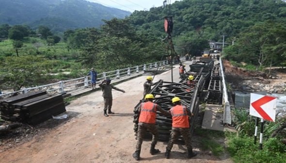 श्रीलंका में बुनियादी ढांचे की बहाली और द्विपक्षीय सहयोग को मजबूत करने के उद्देश्य से भारतीय सेना द्वारा चलाए जा रहे ऑपरेशन ‘सागर बंधु’ के तहत एक और महत्वपूर्ण उपलब्धि दर्ज की गई है। किलिनोच्ची और जाफना में क्रिटिकल ड्यूल कैरिजवे बेली ब्रिज को सफलतापूर्वक लॉन्च करने के बाद अब भारतीय सेना के इंजीनियरों ने कैंडी के केएम-21 क्षेत्र में 100 फीट लंबे बेली ब्रिज के निर्माण कार्य की शुरुआत कर दी है।
