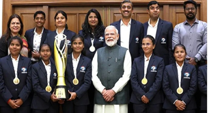 दिल्ली। प्रधानमंत्री नरेंद्र मोदी ने नई दिल्ली के 7, लोक कल्याण मार्ग पर टी-20 विश्व कप जीतने वाली भारतीय दृष्टिबाधित महिला टीम के खिलाड़ियों से बातचीत की। श्री मोदी ने खिलाड़ियों से गर्मजोशी से बातचीत की, उनके दृढ़ संकल्प की सराहना की और उन्हें आत्मविश्वास तथा दृढ़ता के साथ आगे भी इसी तरह खेलते रहने के लिए प्रोत्साहित किया। उन्होंने कहा कि कड़ी मेहनत से आगे बढ़ने वाले खिलाड़ी न केवल खेल के मैदान पर, बल्कि जीवन में कभी भी विफल नहीं होते। उन्होंने कहा कि खिलाड़ियों ने अपनी अलग पहचान बनाई है, जिससे उनका आत्मविश्वास बढ़ा है।
