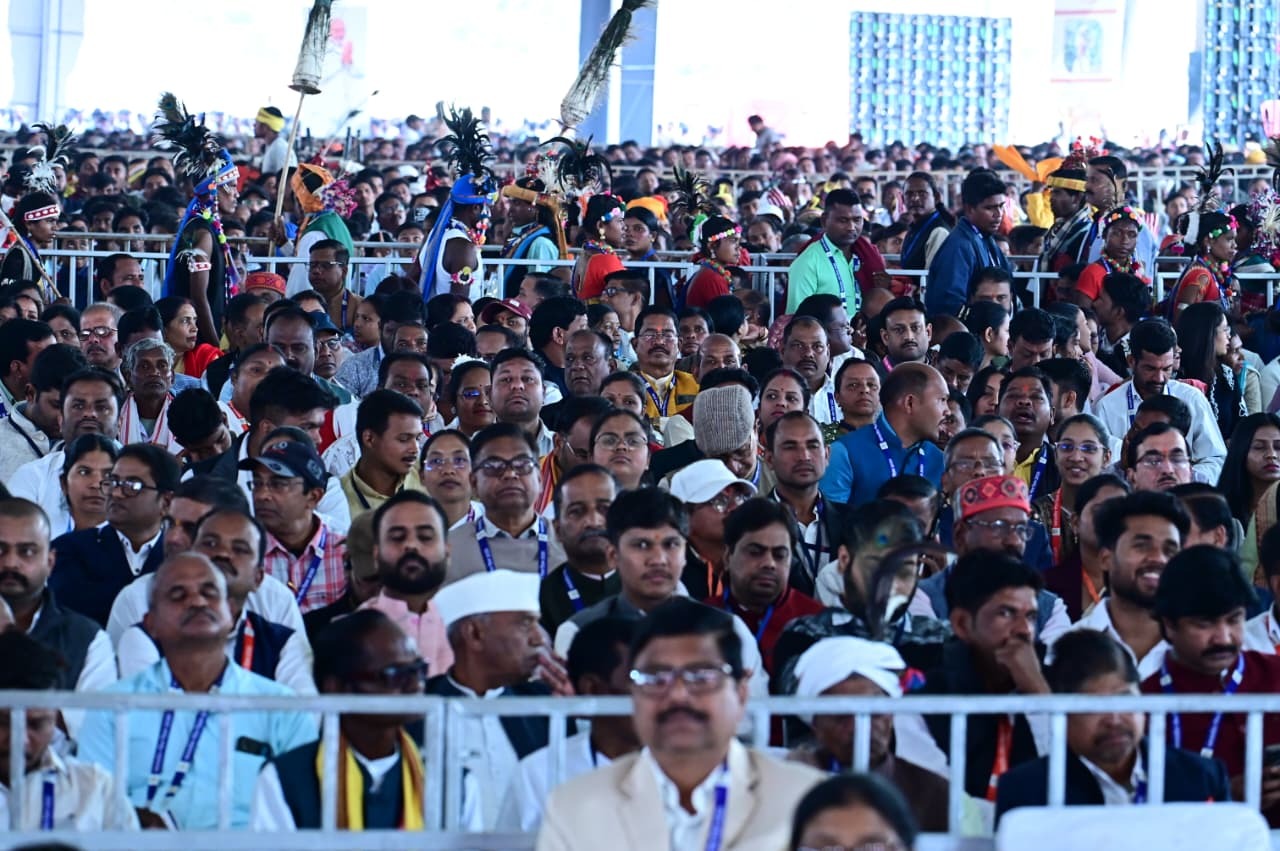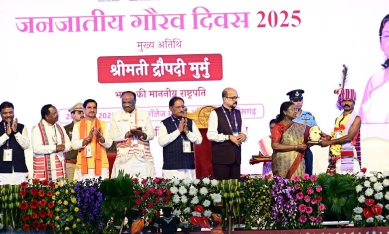 20 नवम्बर 2025/ राष्ट्रपति श्रीमती द्रौपदी मुर्मु जनजातीय गौरव दिवस 2025 के उपलक्ष्य में सरगुजा जिले में 20 नवम्बर को पीजी कॉलेज ग्राउण्ड में आयोजित कार्यक्रम में मुख्य अतिथि के रूप में शामिल हुईं। कार्यक्रम में राज्यपाल श्री रमेन डेका, मुख्यमंत्री श्री विष्णुदेव साय, राज्यमंत्री जनजातीय कार्य मंत्रालय भारत सरकार श्री दुर्गा दास उईके, राज्यमंत्री आवास एवं शहरी मंत्रालय भारत सरकार श्री तोखन साहू, आदिम जाति विकास विभाग कृषि विकास एवं किसान कल्याण विभाग मंत्री श्री रामविचार नेताम, प्रभारी मंत्री जिला सरगुजा एवं वित्त वाणिज्यिक कर विभाग मंत्री श्री ओमप्रकाश चौधरी, पर्यटन संस्कृति एवं धर्मस्व विभाग मंत्री श्री राजेश अग्रवाल, वन एवं जलवायु परिवर्तन परिवहन सहकारिता एवं संसदीय कार्य मंत्री श्री केदार कश्यप, लोक स्वास्थ्य और परिवार कल्याण चिकित्सा शिक्षा पिछड़ा वर्ग एवं अल्पसंख्यक विकास 20 सूत्रीय कार्यक्रम क्रियान्वयन मंत्री श्री श्याम बिहारी जायसवाल, महिला एवं बाल विकास समाज कल्याण विभाग मंत्री श्रीमती लक्ष्मी राजवाड़े, सरगुजा सांसद श्री चिंतामणी महाराज, उत्तर रायपुर विधायक श्री पुरंदर मिश्रा, जगदलपुर विधायक श्री किरण सिंह देव, महापौर अम्बिकापुर श्रीमती मंजुषा भगत भी उपस्थित रहे।