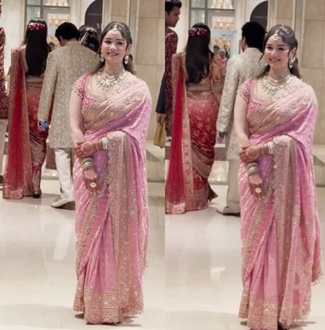 शादी समारोह के दौरान अर्जुन की बहन Sara Tendulkar का लुक भी खास चर्चा में रहा। सारा ने इस खास मौके पर भारी लहंगे की बजाय एक खूबसूरत गुलाबी साड़ी पहनी, जो उन पर बेहद जच रही थी। साड़ी पर स्टोन्स और एम्बेलिशमेंट की बारीक सजावट की गई थी।