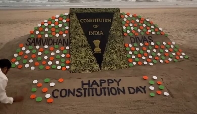 संविधान दिवस के अवसर पर बुधवार को पुरी के मशहूर समुद्र तट पर एक खास नजारा देखने को मिला। विश्व प्रसिद्ध सैंड आर्टिस्ट और पद्म श्री से सम्मानित सुदर्शन पटनायक ने इस बार भी अपनी अनोखी कला के जरिए लोगों का दिल जीत लिया। उन्होंने पुरी बीच पर भारतीय संविधान की महानता को दर्शाती एक बेहद खूबसूरत और प्रभावशाली सैंड स्कल्पचर तैयार की, जिस पर बड़े अक्षरों में ‘हैप्पी कॉन्स्टिट्यूशन डे’ लिखा गया था।