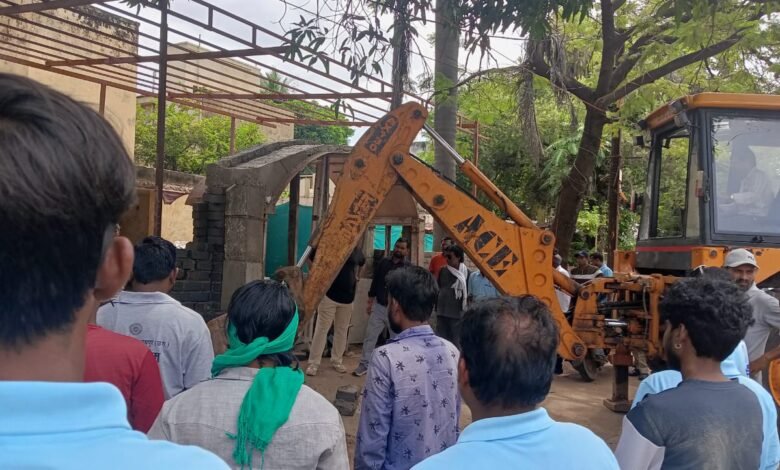 रायपुर। आज नगर पालिक निगम रायपुर के आयुक्त विश्वदीप के निर्देश पर नगर निगम जोन 7 नगर निवेश विभाग की टीम ने जोन 7 अंतर्गत स्वामी आत्मानंद वार्ड क्रमांक 38 के क्षेत्र में चौबे कॉलोनी में प्रगति कॉलेज के सामने हर्षवर्धन शास्त्री द्वारा नाली को कब्जा कर सड़क तक फैलाकर बनाई गयी अवैध बाउंड्रीवाल को जेसीबी मशीन की सहायता से जोन 7 जोन कमिश्नर राकेश शर्मा के नेतृत्व और कार्यपालन अभियंता ईश्वर लाल टावरे की उपस्थिति में तोड़कर हटाने की कार्यवाही की है.