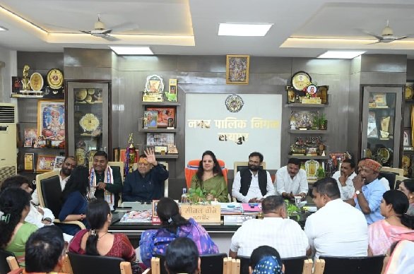 रायपुर। आज रायपुर नगर पालिक निगम की महापौर मीनल चौबे ने नगर निगम महापौर कक्ष में नगर निगम में सत्ता पक्ष भारतीय जनता पार्टी के पार्षदों की बैठक लेकर नगर निगम सचिवालय द्वारा नगर निगम सामान्य सभा की 30 मार्च सोमवार को प्रातः 11 बजे बुलाई गयी बैठक की तैयारी एजेंडावार चर्चा एवं विचार – विमर्श पार्षदों से करते हुए करवाई.