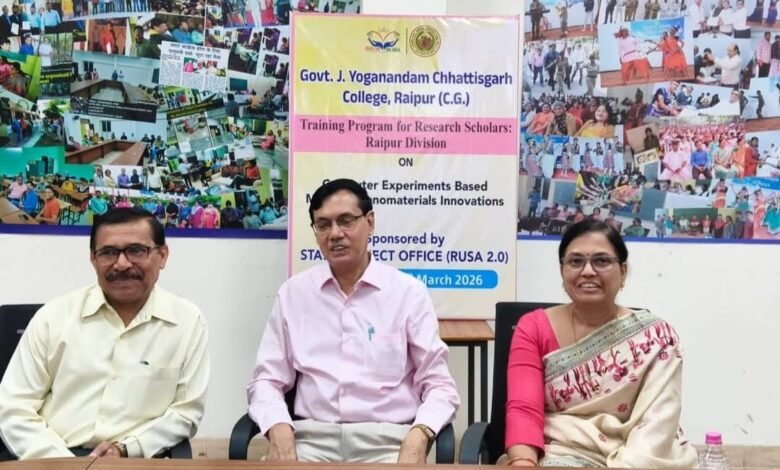 रायपुर, 12 मार्च, 2026। रायपुर संभाग के विज्ञान शोधार्थियों के लिए आयोजित तीन दिवसीय प्रशिक्षण कार्यक्रम का तीसरा एवं अंतिम दिन आज शासकीय जे. योगानंदम छत्तीसगढ़ महाविद्यालय, रायपुर में रूसा 2.0 (प्रिपरेटरी ग्रांट) के अंतर्गत संपन्न हुआ। कार्यक्रम के संबंध में जानकारी देते हुए आयोजन समिति के सदस्य डॉ. गोवर्धन व्यास ने बताया कि अंतिम दिन आयोजित विभिन्न तकनीकी सत्रों के माध्यम से प्रतिभागियों को आधुनिक शोध पद्धतियों तथा ल्यूमिनेसेंस के वैज्ञानिक उपयोगों के बारे में महत्वपूर्ण जानकारी प्रदान की गई।